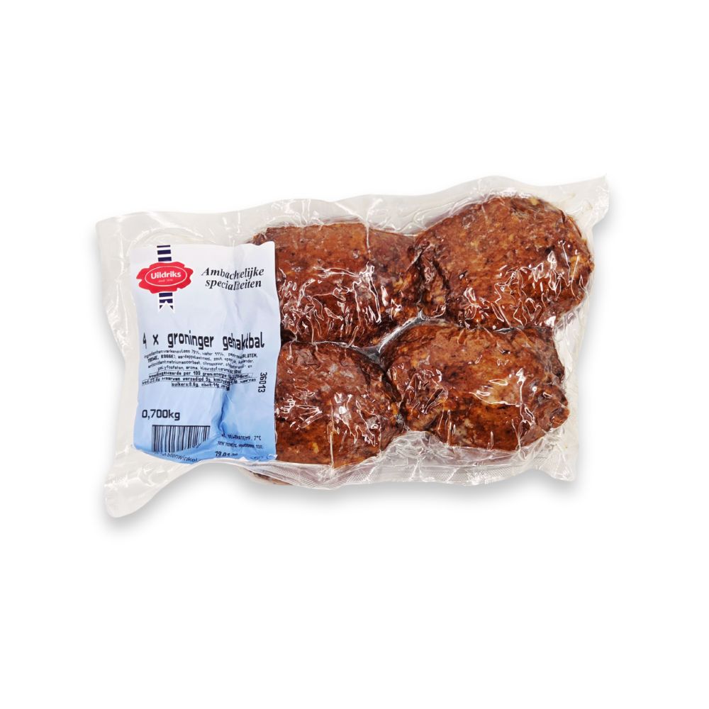 Proef het vakmanschap van Slagerij Uildriks! Deze Groninger gehaktbal is eerlijk, goed gekruid en heeft een stevige bite. Vers bij de slager opgehaald en razendsnel bij jou thuisbezorgd. Ambachtelijk bereid en heerlijk bij de warme maaltijd of als hartige snack. Gemoedelijk, vers en écht van dichtbij. Eet smakelijk!